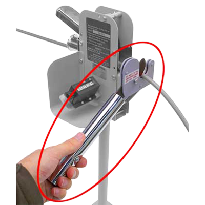 The wire coiling or spooling devices should be installed just after the cable and wire length counter. The coiling devices allow you to neatly wrap your wire length measurement section so it can be easily zip tied and packaged for shipment or further processing. The spooler aids in putting the cable coming from the cable length counter onto a spool. 3 sizes of wire coilers are available.